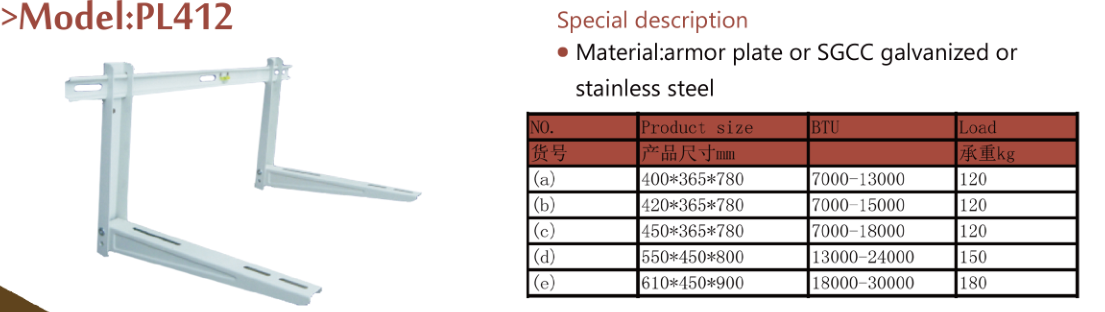 【安裝說明】:根據需求挑選合適的支架(參考產品數據:立柱長度+托住長度+承重),輕微向后傾斜到墻壁是出于安全目的,空調部件支架將給你一些間隙,以確保足夠的空氣冷凝操作。