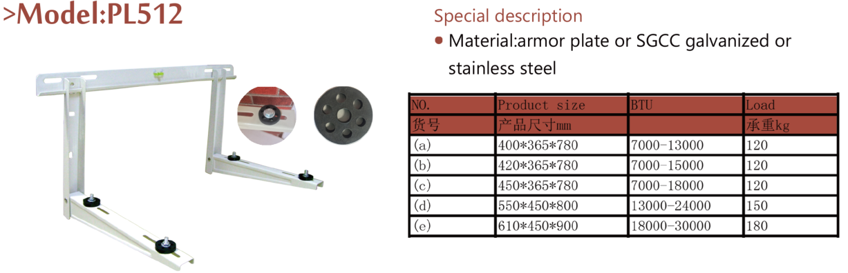 【安裝說明】:根據需求挑選合適的支架(參考產品數據:立柱長度+托住長度+承重),輕微向后傾斜到墻壁是出于安全目的,空調部件支架將給你一些間隙,以確保足夠的空氣冷凝操作。